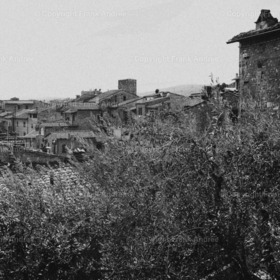 #San Gimignano Toskana Dächer Olivenbäume schwarz weiß Häuser Altstadt